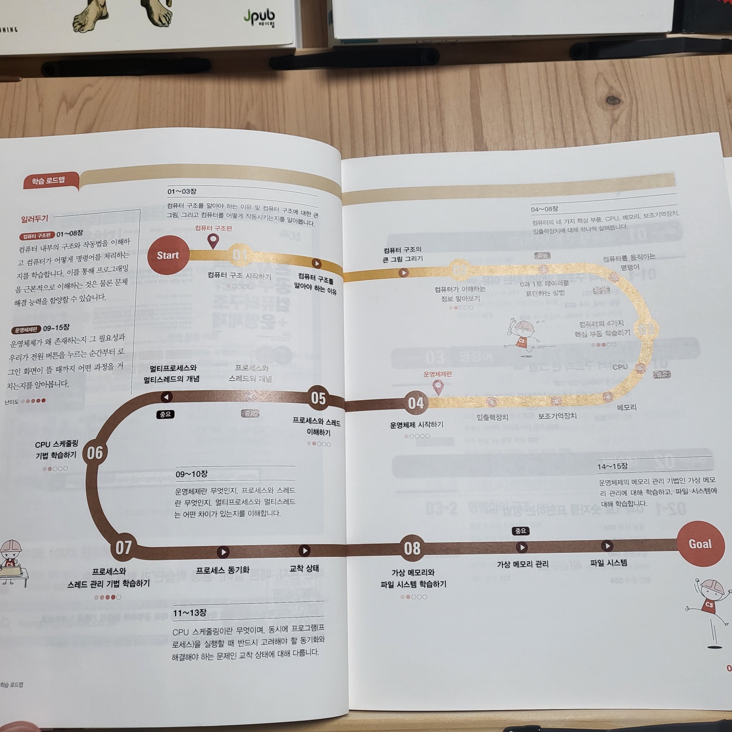 1~8장은 컴퓨터 부품들에 대한 내용이고, 9~15장까지는 운영체제에 대해 다루고 있습니다.